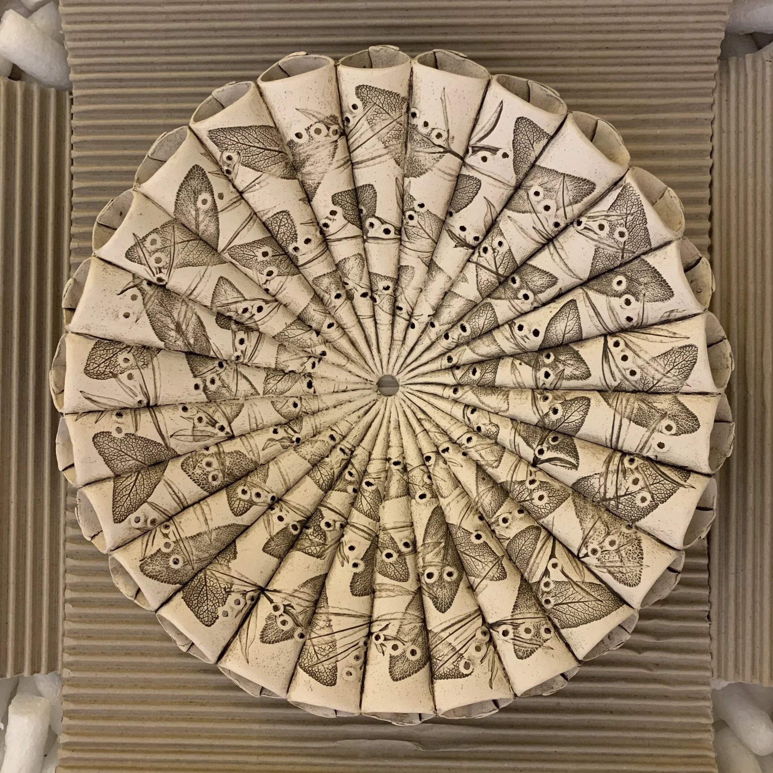 Committed to choose work of an artist new to me, I discovered Lisa Ellul, who creates stunning porcelain ceramics, one gorgeous work of hers which now sits on the small desk where I sit in silence with my morning coffee and reflection. I was initially drawn to this bowl because I thought the imprints were moth wings emerging out of the creases of clay (welcome to trifocals), but l loved it even more when I realized they were sage leave impressions, holes piercing and allowing light and air to pass through... Check out her work-- you will soak it up as I did, I predict! One of the most special things about this pledge has been the forging of bonds with new collectors and the connections to a whole new world of artists brought about through this initiative....