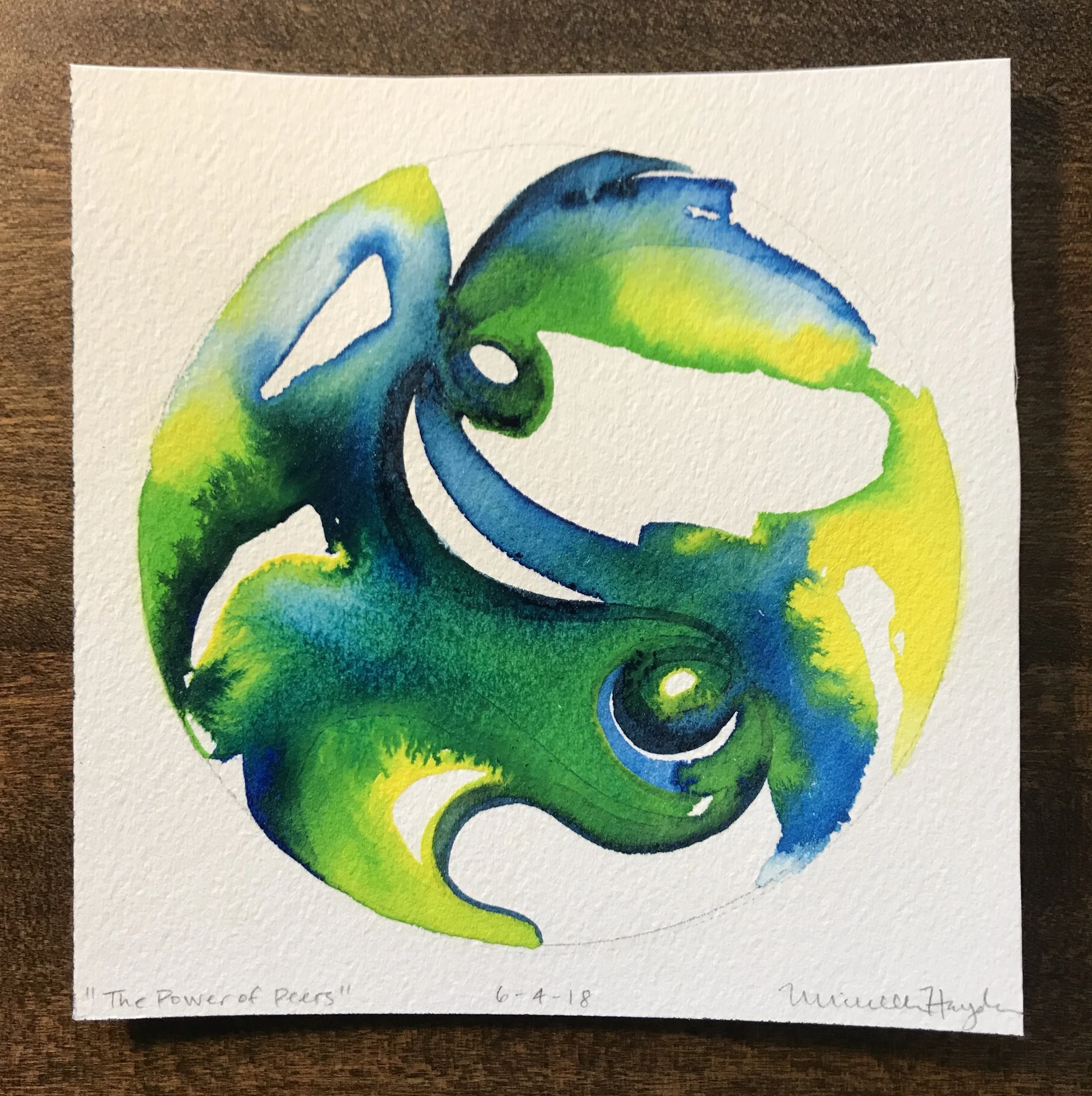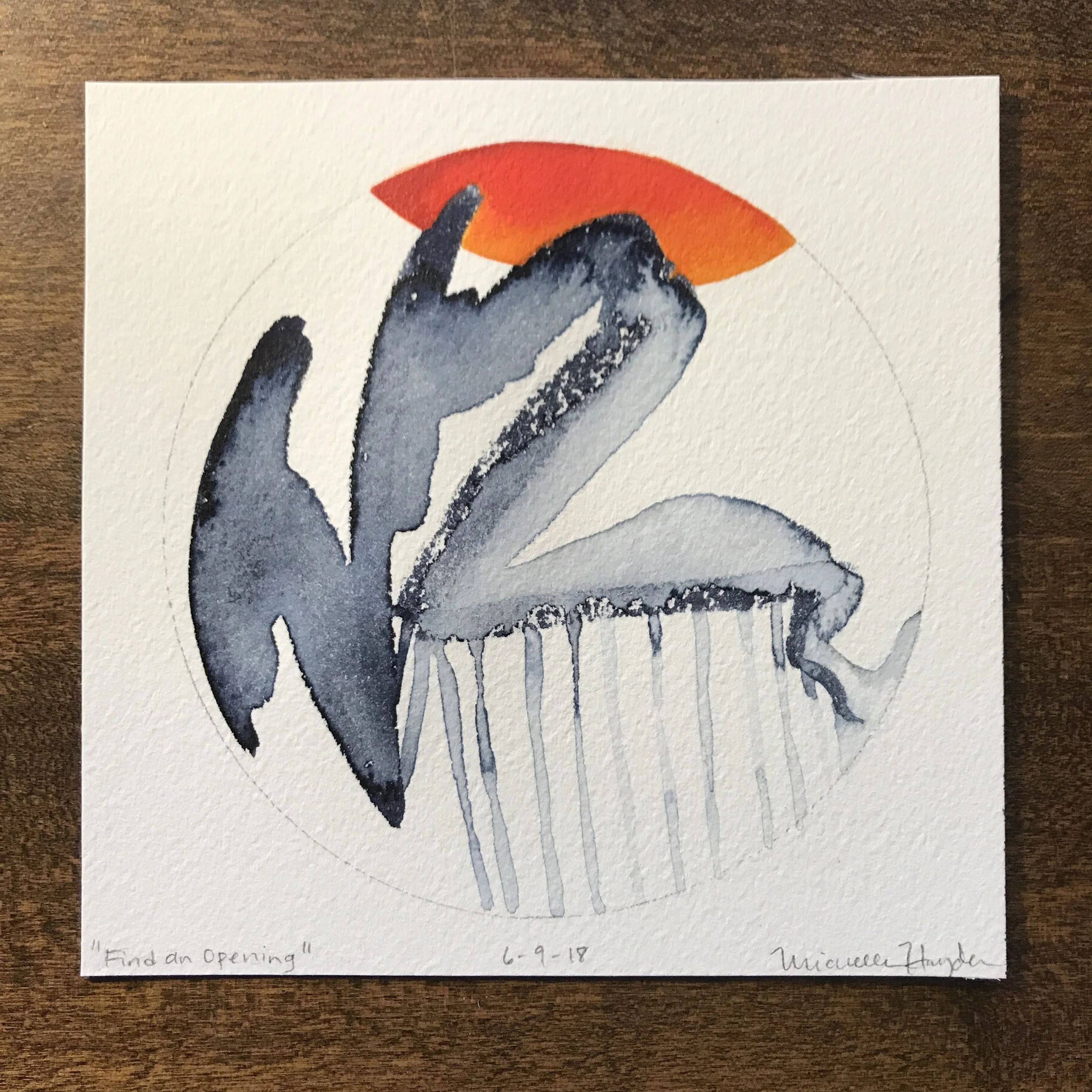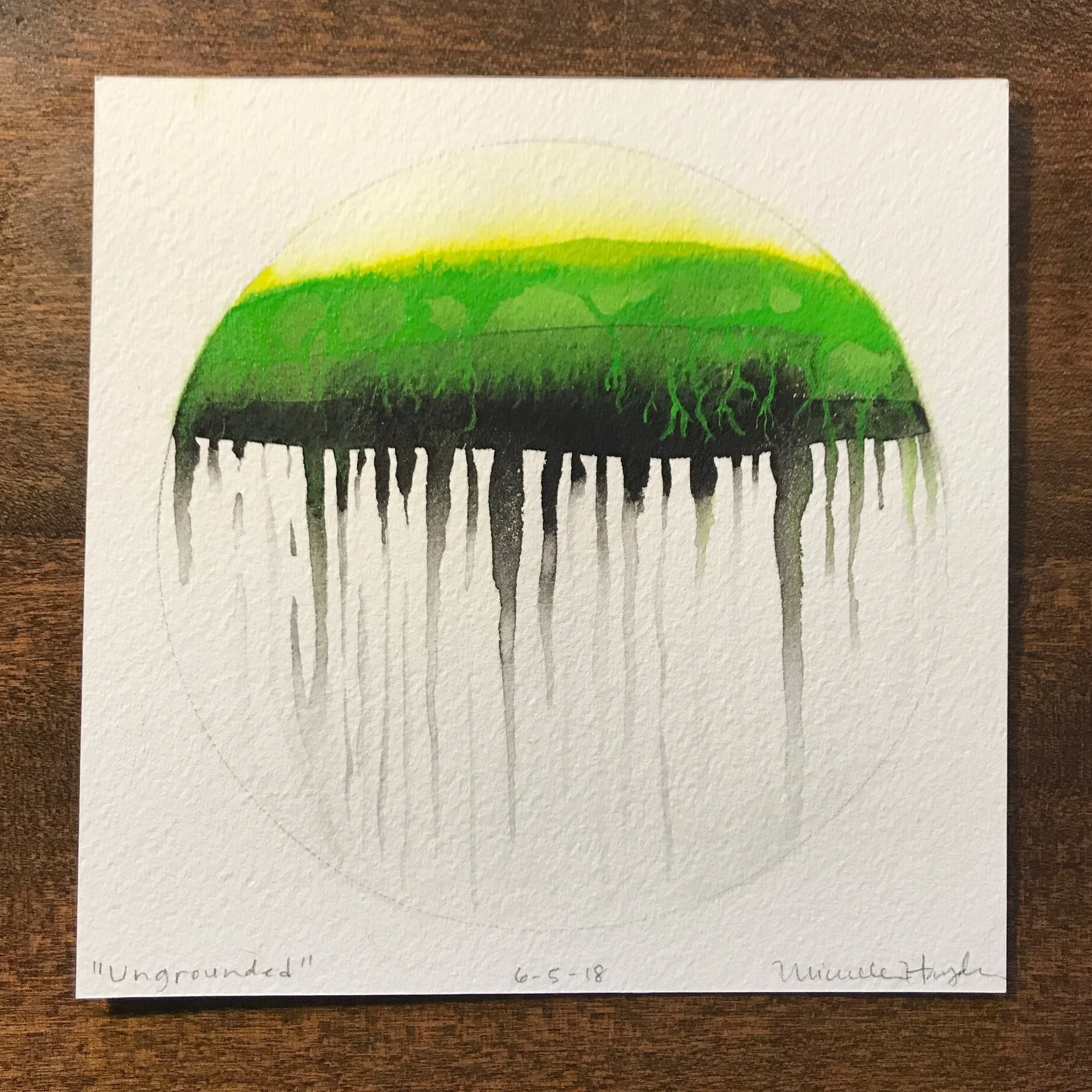 ("It is a beautiful morning, and I decided to paint from one of my favorite warm weather spots— our humble storm shelter top, which overlooks the hillside, deep into the ravine. As I listen to the birds, bugs, frogs, and neighbor’s cows, I am reminded that some of the most profound spots to sit and be are right in our midst. I am filled with gratitude for our land and dwelling, and hope we all have spaces that are safe and cherished.")