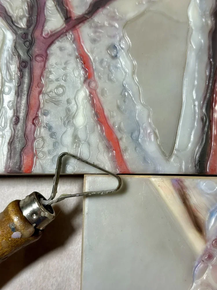 REVEALING BEAUTY WITHIN THE SURFACE OF THICKLY LAYERED AND FUSED WAX…