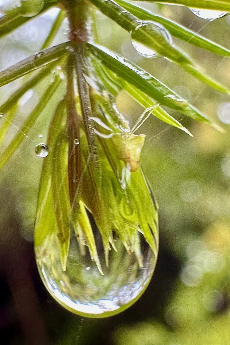 I will leave you with a gentle drop of rain that is hanging by a thread… the bud of this Australian branch is less than a quarter of an inch. What magical worlds we can enter when we slow down long enough to see.