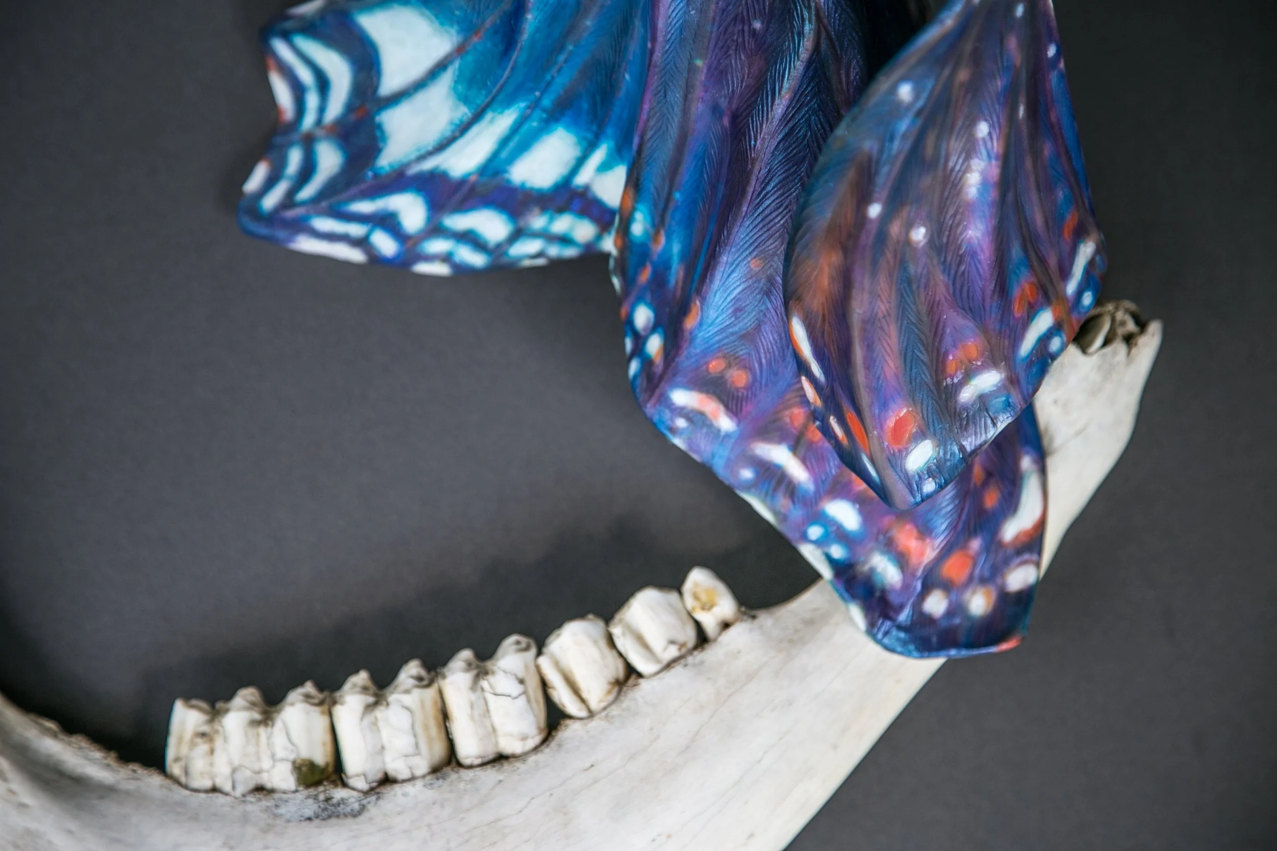 There seems to be a sense of dignity the butterfly is feeling as she pauses, preparing to take flight from the jaw of a cow long gone. My hope is that you may find strength, comfort, and healing as you gather courage and give yourself permission as you speak your truth.