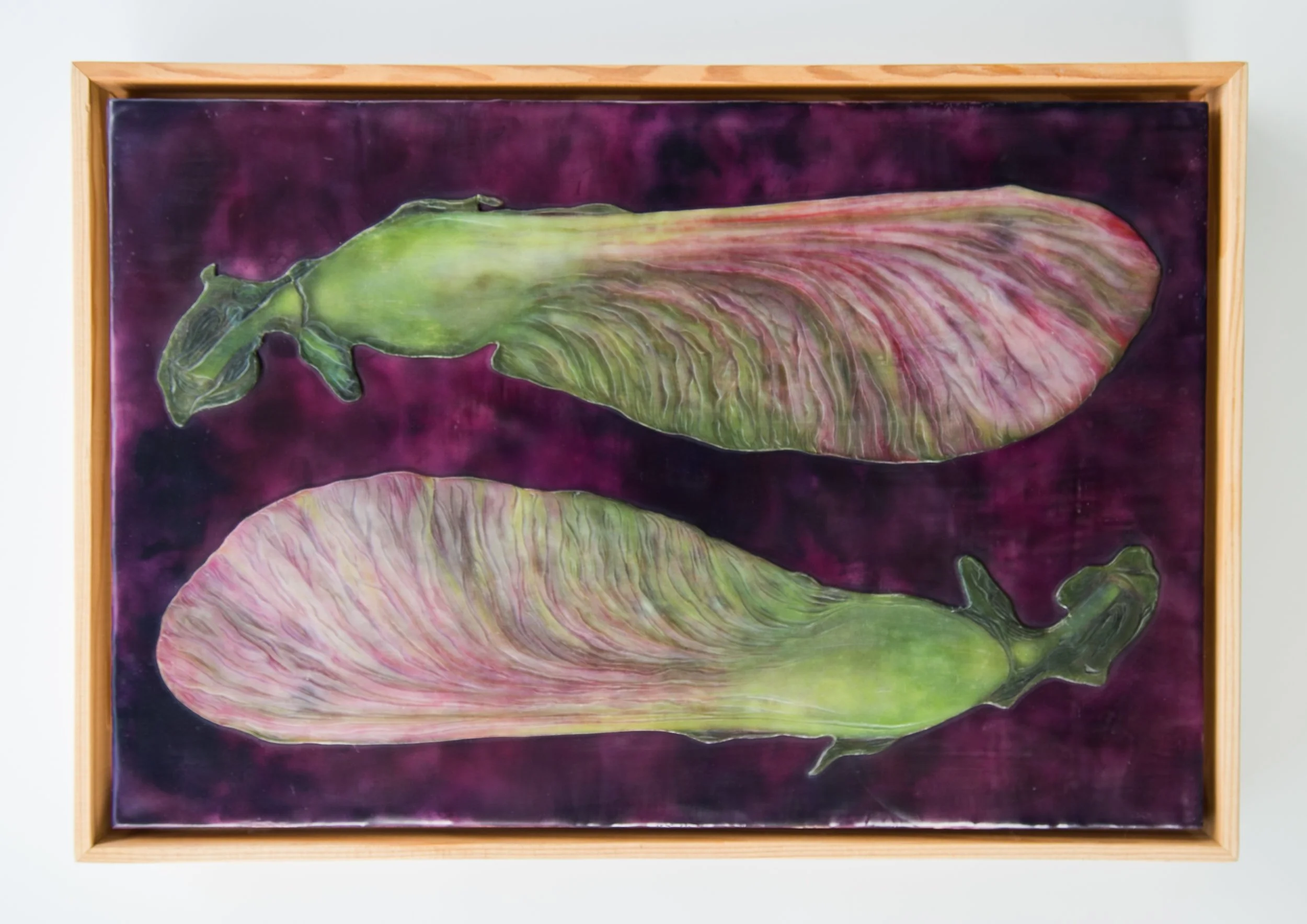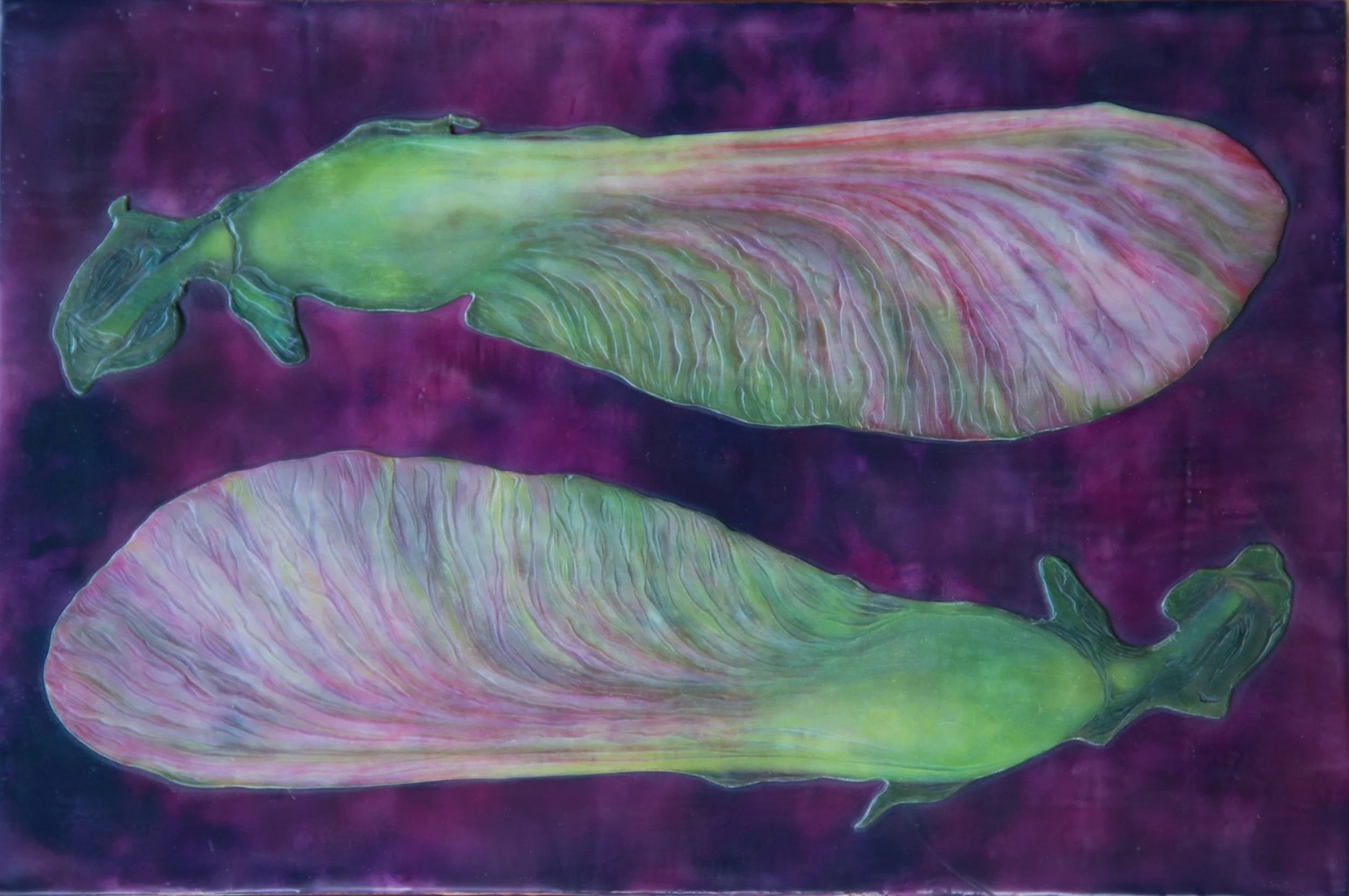 As the deciding moment begins the unfolding of a monarch’s chrysalis, carving the ridges and valleys of the maple seeds breathes life into them. There is joy in holding a maple seed as large as a turkey platter. How I would love to have released them, perched from a high branch…