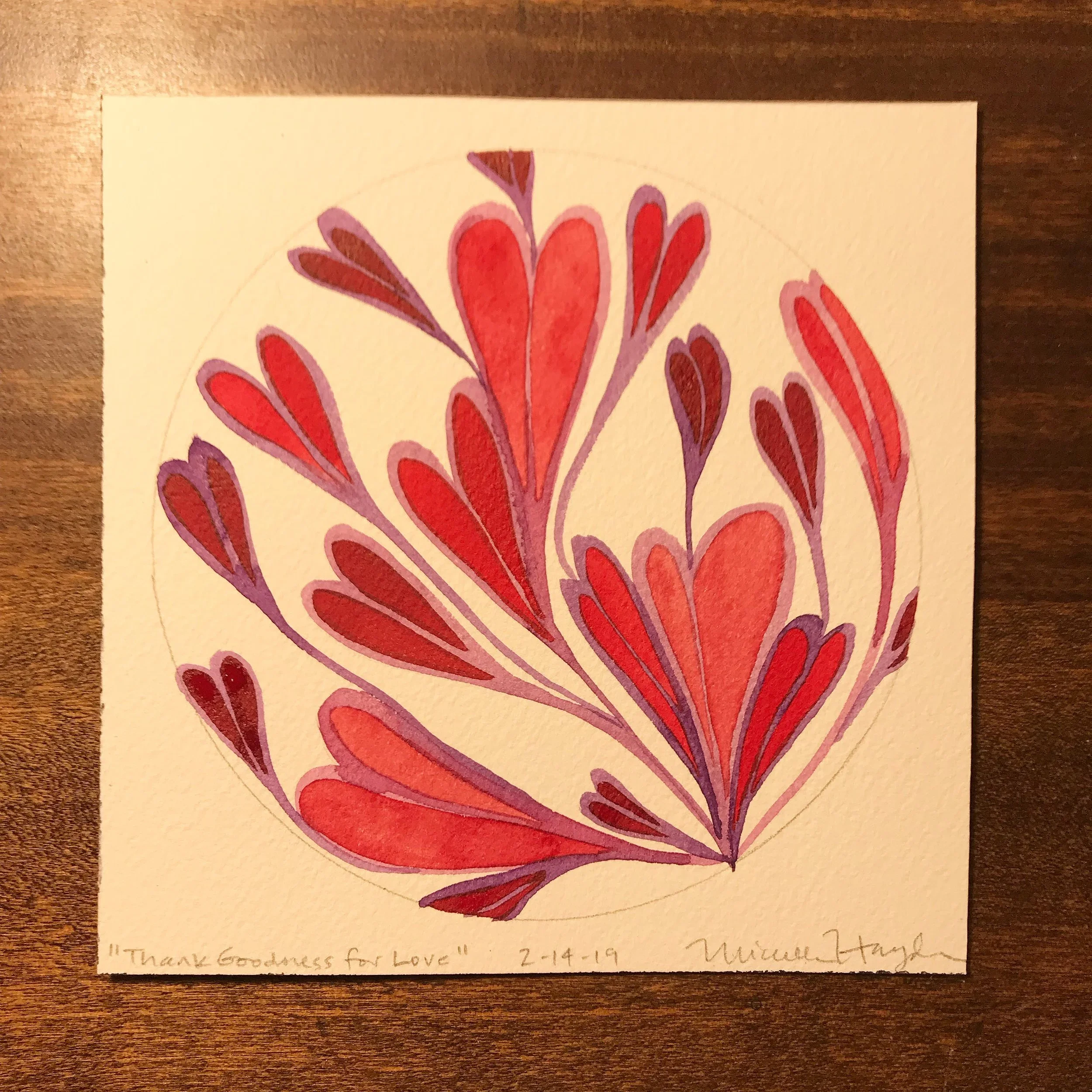 “It is not every day that I fill my page with literal hearts, although I did so quite easily as a child and can remember practicing making them until there was little space left on the page. Their simple shape cannot begin to contain their power to connect, heal, inspire, enliven, grow, and experience joy so great, that it is beyond words. Wishing you all expansive love today, all directions and even off the page...”