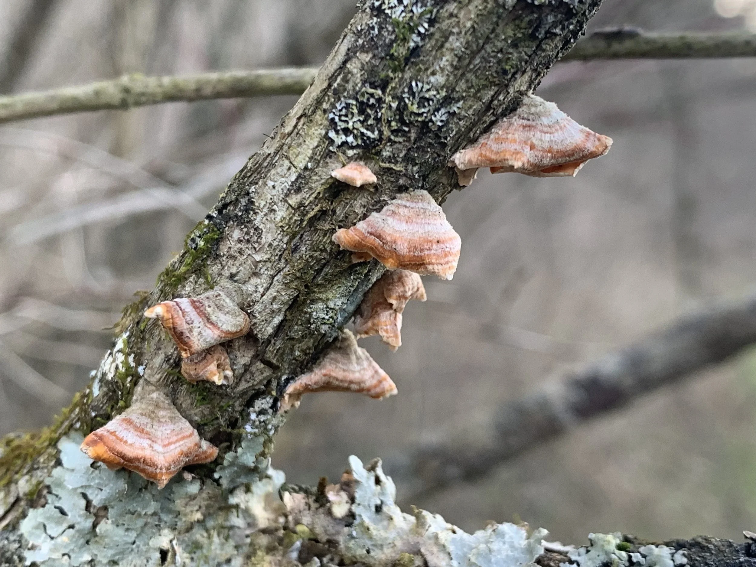 As I have wrapped up my exhibit and am now in prep mode for KY Crafted: The Market, I am realizing how much I need bits of space that are not inhabited by a to-do list. It was wonderful to take just a couple of hours to meander over our land and see what tiny signs of spring are erupting. These small fungi are less than a quarter inch in size, yet leapt off the branch to my eyes. It is amazing how much color pops when we have been in a period of muted and diminished tones. Wishing you all moments of inspiration and hope for upcoming change…