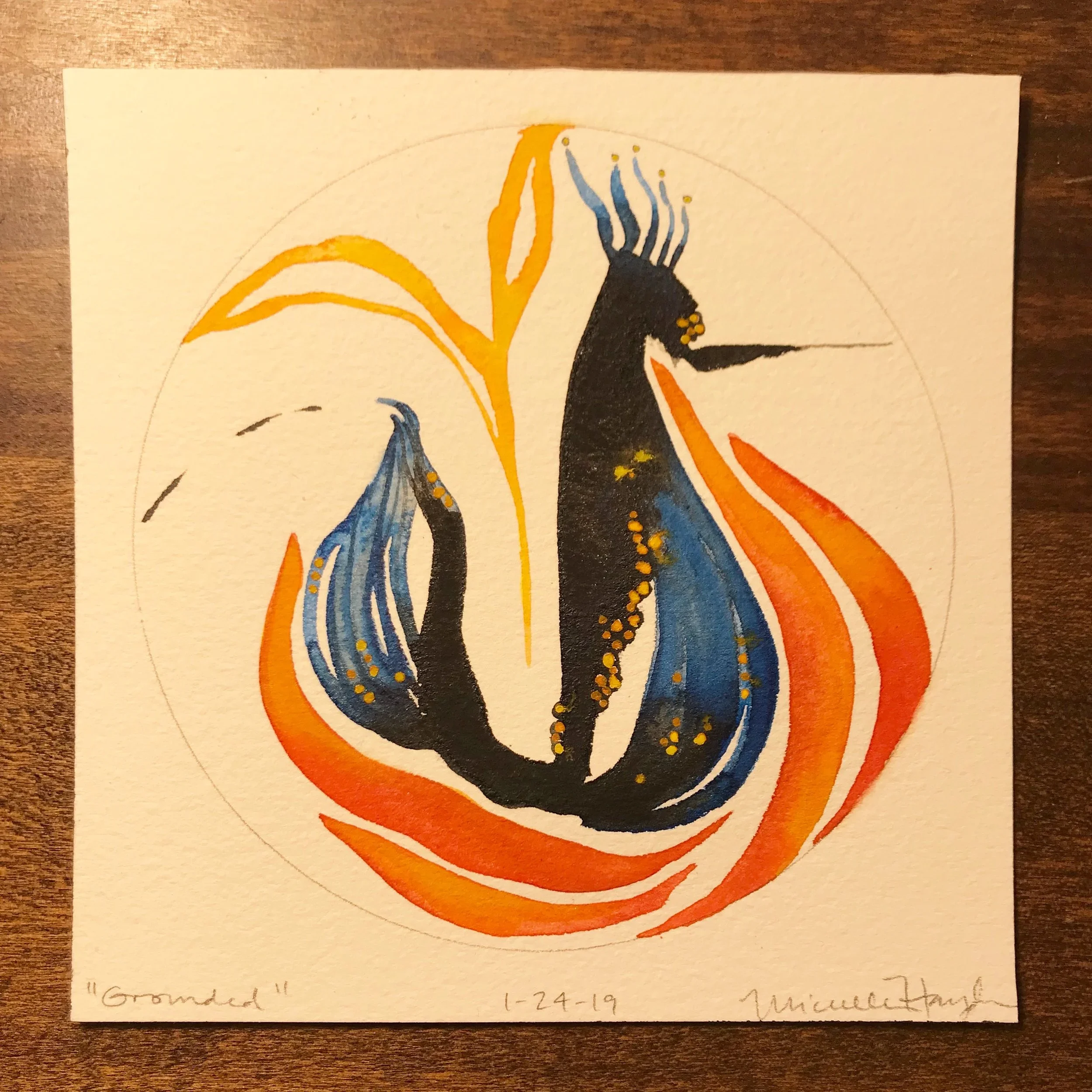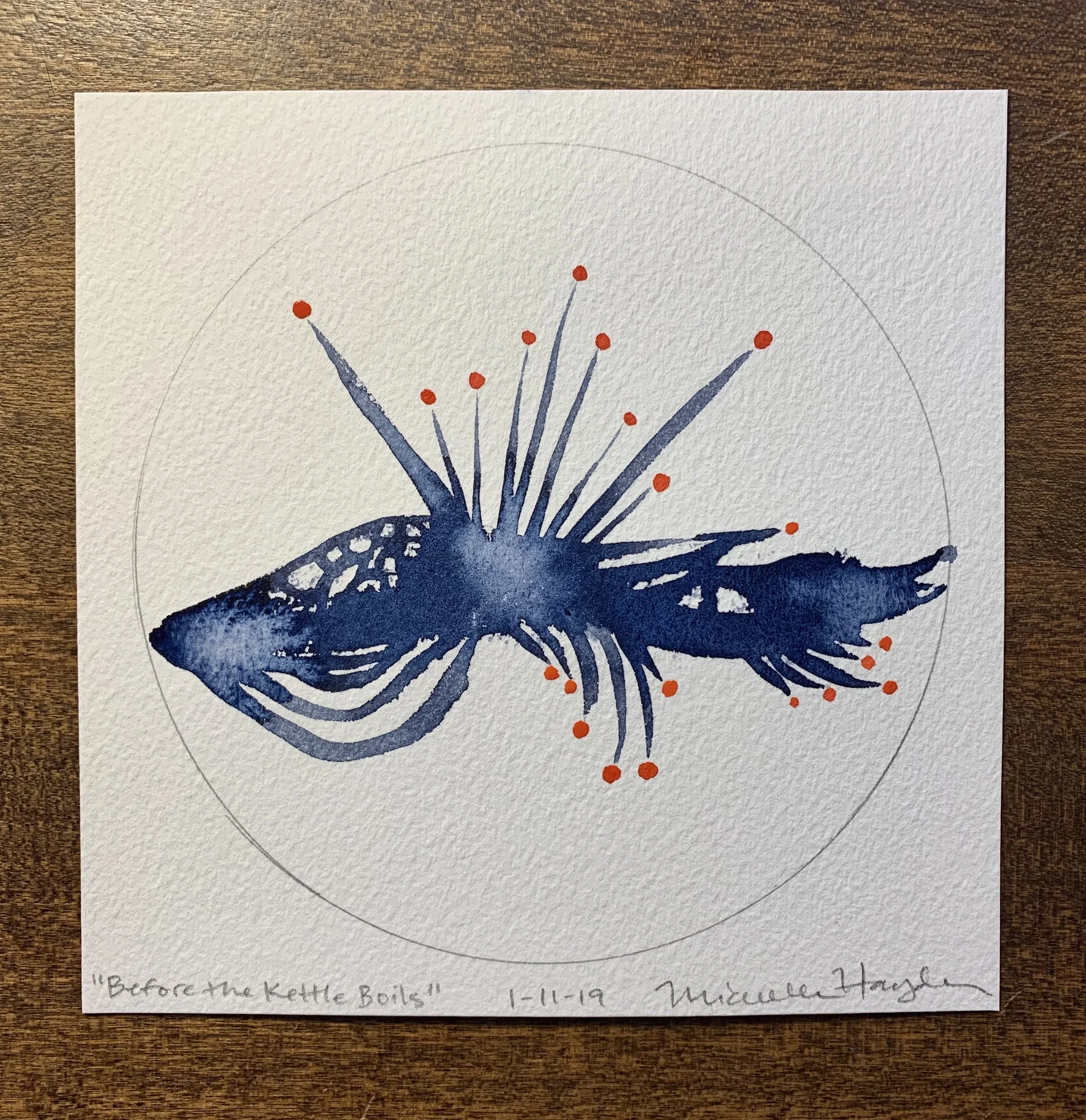 My only painting goal this morning was to complete my circle before the kettle boiled for tea, which made me laugh as I threw caution to the wind and got to work. It was quite freeing to know I would not labor over word or image today, saving energy to return north and continue working. Finding small pickets of release are a great start to any day, hoping we all do this more often!